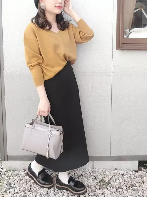 からし色 マスタード スカートコーデ 26選 トップスの正解カラーをご紹介 Mine マイン