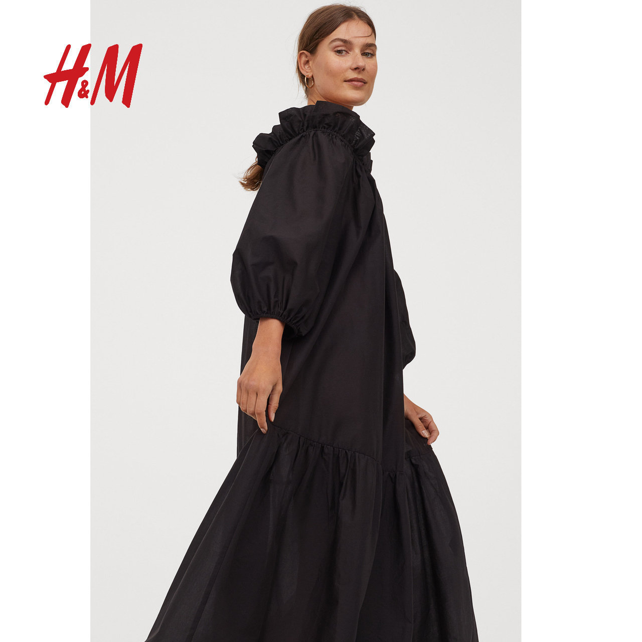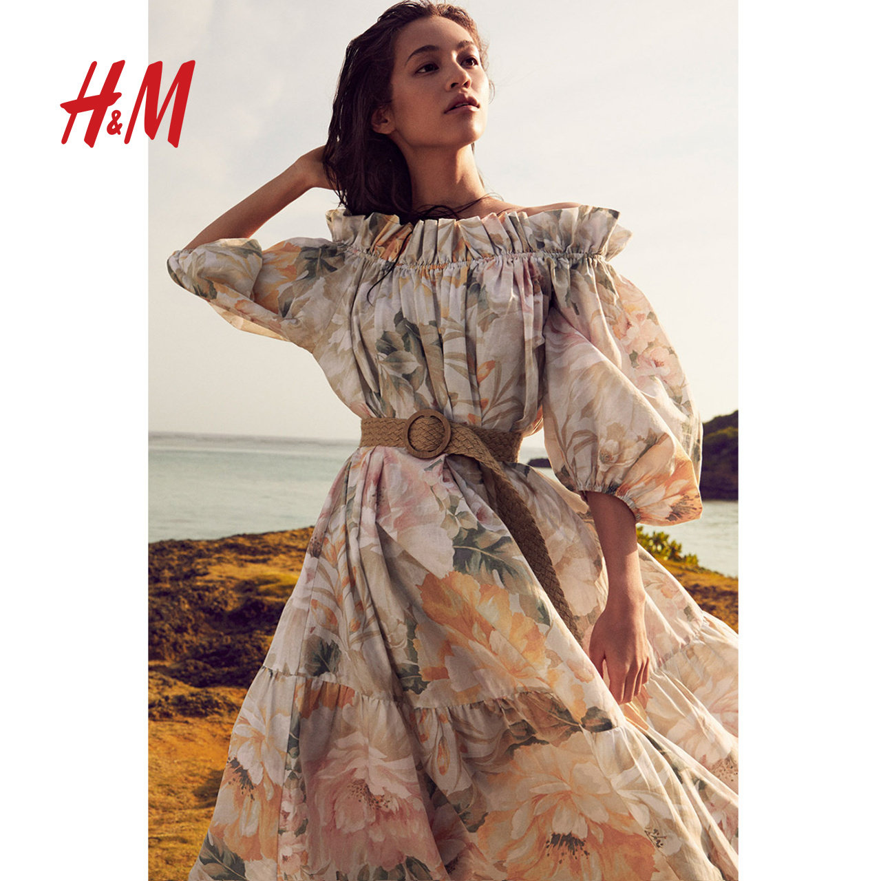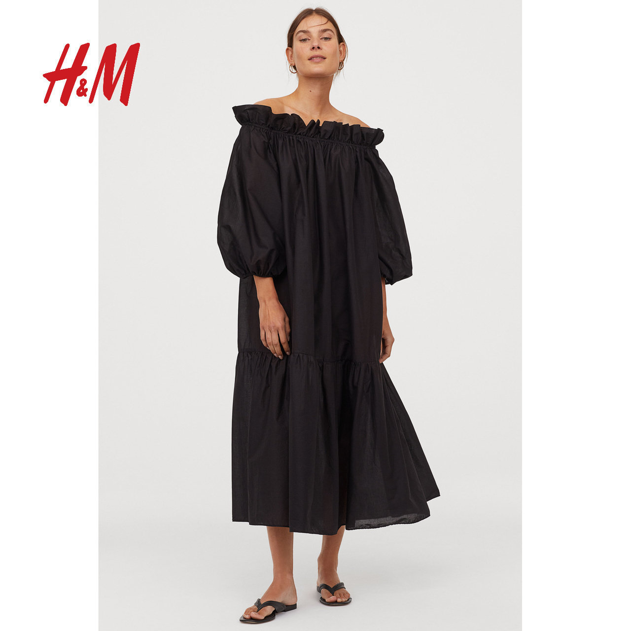 水原希子同款 Hm女裝網紅防曬長裙輕熟露肩黑色洋裝