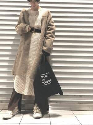 今季の注目コーデ ニットワンピース を使ったレイヤードスタイル15選をご紹介 Folk