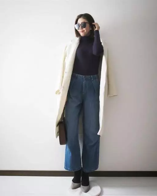 グレーコート デニム ベージュパンプスのコーデ レディース 海外スナップ Milanda