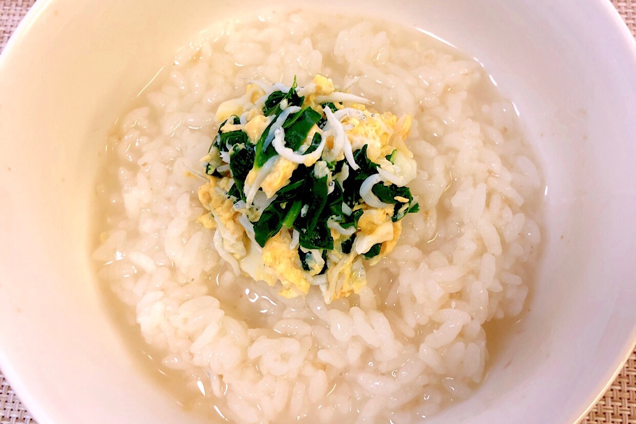 子供が風邪の日に シラスとほうれん草と卵のおかゆ レシピ 作り方 By Yukamama 楽天レシピ