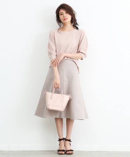 ピンクベージュスカートの大人顔コーデ 甘さを控えた大人の着こなし Toplog